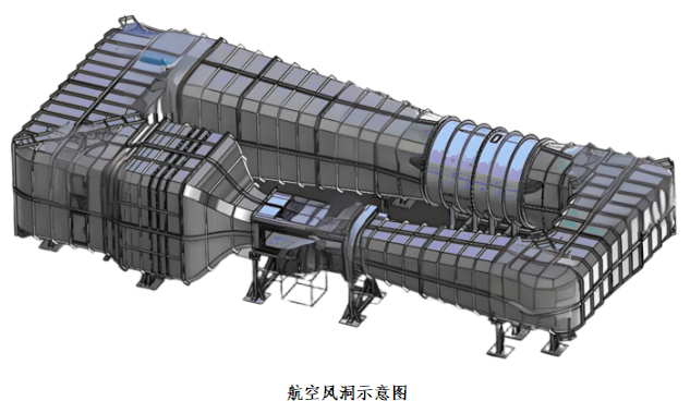 中商升创设计的航空风洞,由六个系统组成,分别是:洞体系统、动力系统、阵风及变湍流度系统、控制系统、测试系统、配套系统。