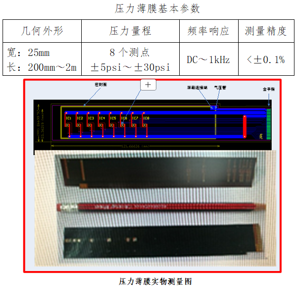 中商升创发明的特种压力薄膜主要应用于表面压力测量的新型测量设备,具有不改变被测体结构、快速安装的特点。中商升创在总结当今国际MEMS先进技术基础上,研发了一系列量程、测点位置可定制的产品,可全面替代目前压力测量领域广泛应用的电子扫描阀和脉动压力传感器,广泛应用于飞行器、地面交通工具(汽车、高铁等)、风力机叶片等项目的风洞及外场试验。