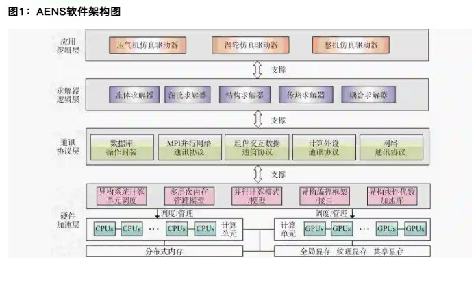 叶轮机械流固热耦合仿真已从松散单一学科分析迈入高精度、高效率、多物理场协同的新阶段。作者团队研发的AENS软件通过“底层库-求解器-配置总线”三层异构架构,实现了CPU/GPU/DCU的亿级网格并行,为国产软件提供了可扩展底座。流体技术上,RANS/LES混合框架与转捩、湍流修正模型(Helicity-SST、DDES-MDDES等)显著提升了复杂内流预测精度,定常掺混面、通道平均方程及谐波平衡等多级方法已可兼顾精度与工程耗时。固体仿真领域,弹塑性本构、返回映射算法及模态/瞬态/冲击一体化求解器已应用于叶片强度寿命评估,多尺度、降阶与非线性加速算法正成为研究热点。耦合算法层面,分区耦合借助KD-Tree快速搜索、径向基函数守恒插值和射线修正DWF动网格,解决了叶顶间隙保真与跨尺度数据传递难题;流热耦合通过“超网格”二次切割插值实现能量守恒。总体而言,高保真模型、异构并行、智能加速与自主可控软件生态正同步推进,为下一代高压比、高转速、高温叶轮机械的全生命周期设计、运维与优化奠定了坚实的数字化基础。未来,AENS软件将根据用户反馈,进一步提升高压比、高转速、高温叶轮机械场景的流固热耦合精度与效率,拓展多物理场耦合范围,深化在复杂工程场景中的仿真应用能力,为先进叶轮机械工程设计提供更强大、更高效的仿真工具。